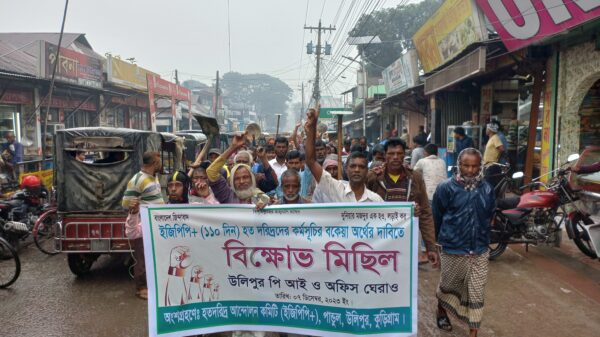হতদরিদ্রদের বকেয়া টাকার দাবিতে বিক্ষোভ মিছিল
