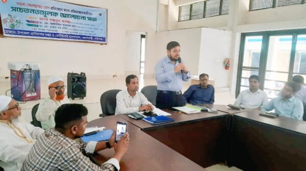 পলাশবাড়ীতে তড়কা (অ্যানথ্রাক্স) রোগ প্রতিরোধে মাংস প্রক্রিয়াজাতকারীদের সচেতনতামূলক আলোচনা সভা