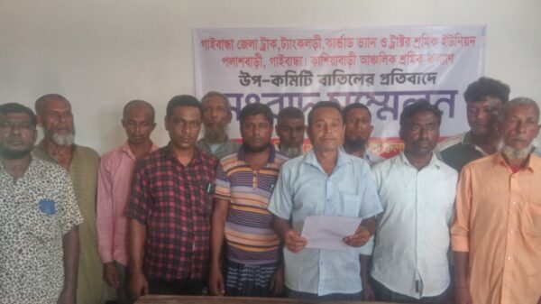 পলাশবাড়ীর কাশিয়াবাড়ী আঞ্চলিক শ্রম কল্যাণ উপ-কমিটি বাতিলের প্রতিবাদে সংবাদ সম্মেলন