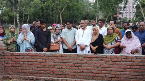 জলঢাকায় শিক্ষিকা মাহেরীন চৌধুরীর সমাধীতে শ্রদ্ধা নিবেদন করেন মহিলা দল