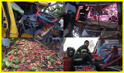 মাদারীপুরে বাস-ট্রাক দুর্ঘটনায় ১৫ আহত